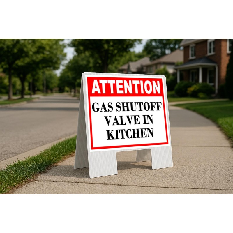 Gas Shutoff Valve in Kitchen Attention Folding Coroplast A-Frame Double-Sided 23in x23in