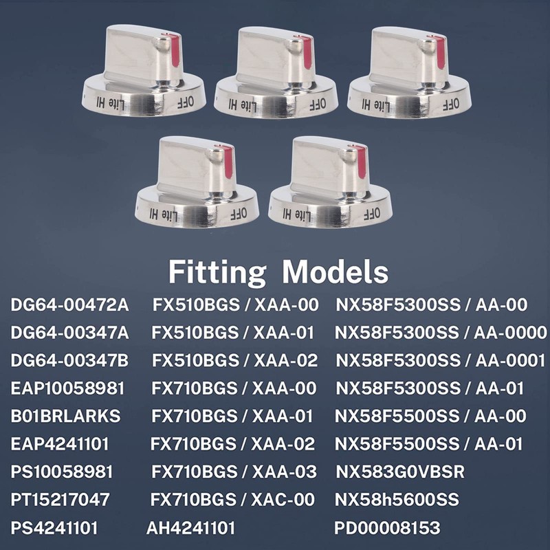 Gas Stove Knob Cover, Stainless Steel, Direct Installation, 5pcs, Compatible with FX510BGS, FX710BGS, NX58F5300SS, NX58F5500SS, NX58K7850SS, NX58F5700WS