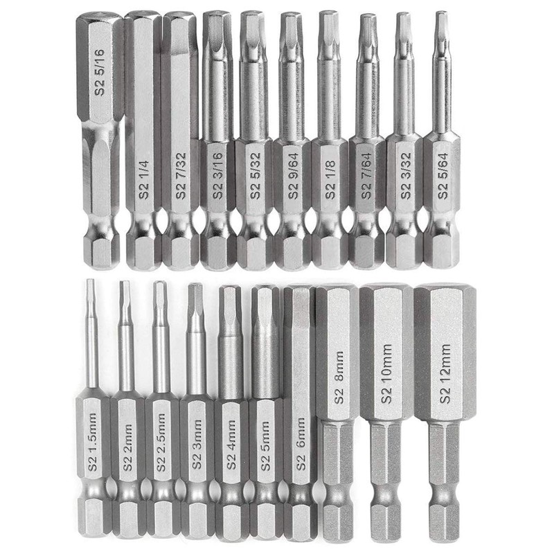 Gasea 20pcs Hex Head Allen Wrench Drill Bit Set 2.3" Long 1/4" Shank Quick Release Magnetic Screwdriver Bits Set (10pc Metric + 10pc SAE)