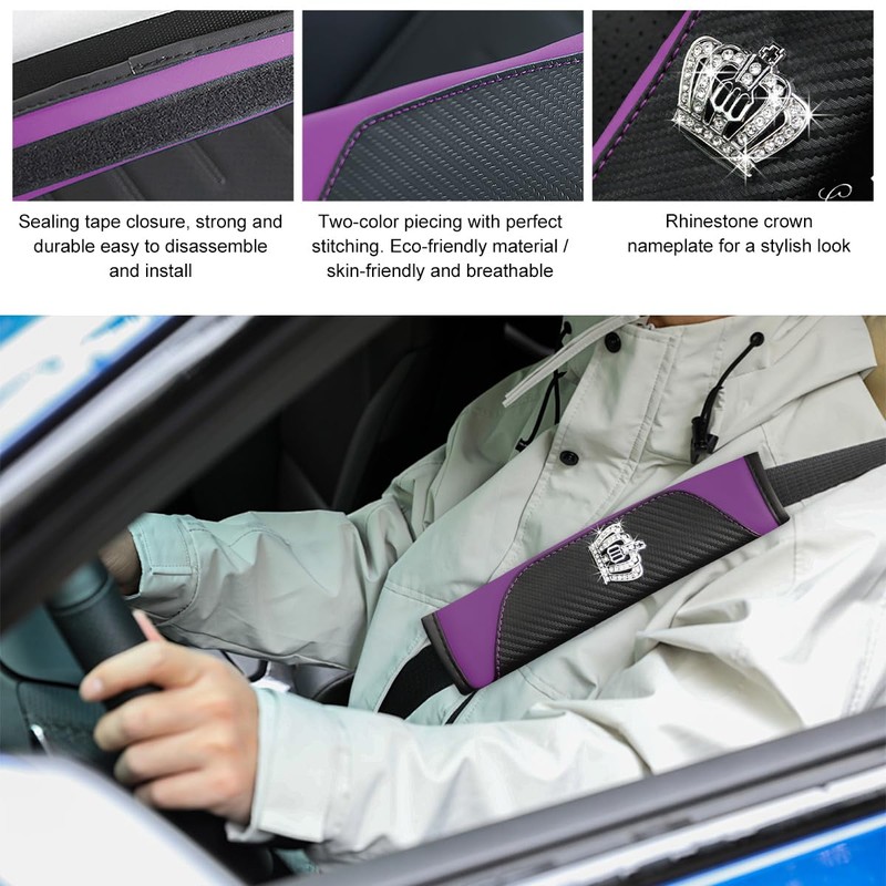 - 【Exquisite Design】: The surface of this seat belt cover is designed with a stylish carbon fiber texture, which looks simple and generous. Not only that, it also has a crown shape inlaid with rhinestones, which sparkles under the light and enhances the refinement of the whole car.