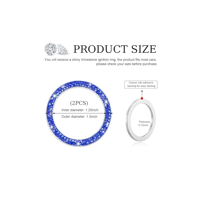 - Wide Application: You will receive a sparkling rhinestone decorative ring with an inner diameter of 1.25 inches and an outer diameter of 1.5 inches. They are suitable for most car ignition, for example, they can be used for car engine start-stop button, gear shifter and so on.