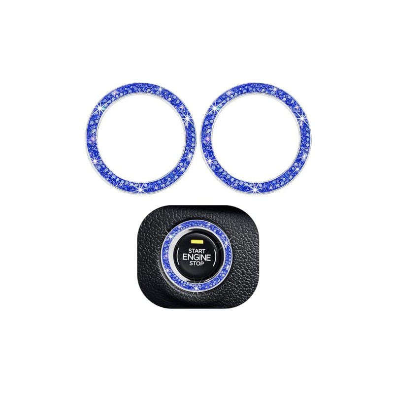 Gasedin Gasedin 2 PCS Car Engine Start Stop Decoration Ring, Sparkling Crystal Vehicle Push Button Start Sticker, Double Rhinestone Engine Ignition Button Decal, Universal Car Accessories (Dark Blue)