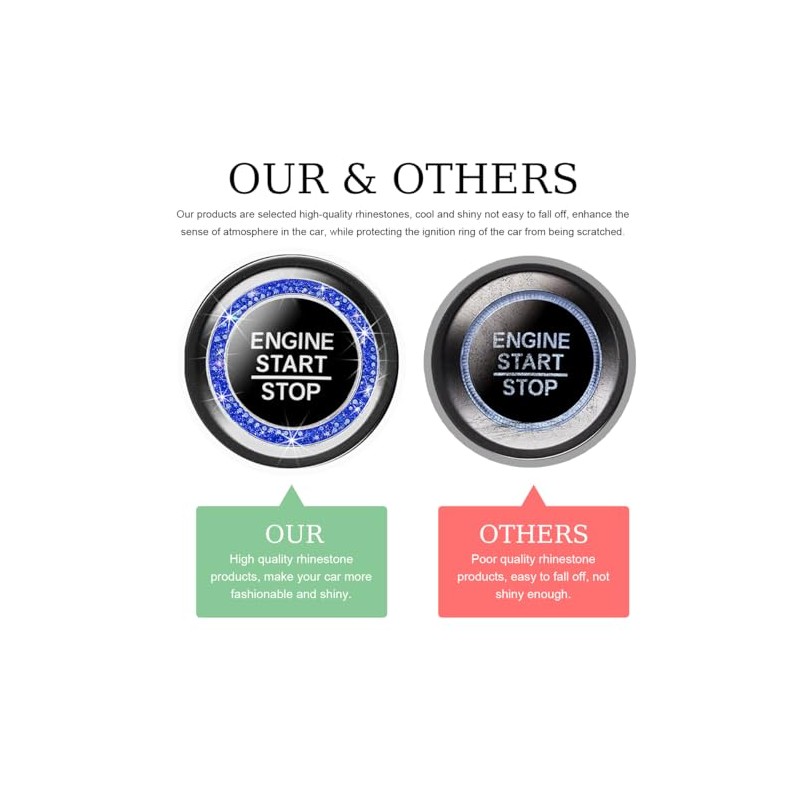 - Easy Installation: Each crystal ring comes with its own ring of tape, no other tools are needed. First clean the mounting location, peel off one of the tapes, align the crystal ring and press firmly. Finally, peel off the other side of the tape, align the ignition button and press firmly.