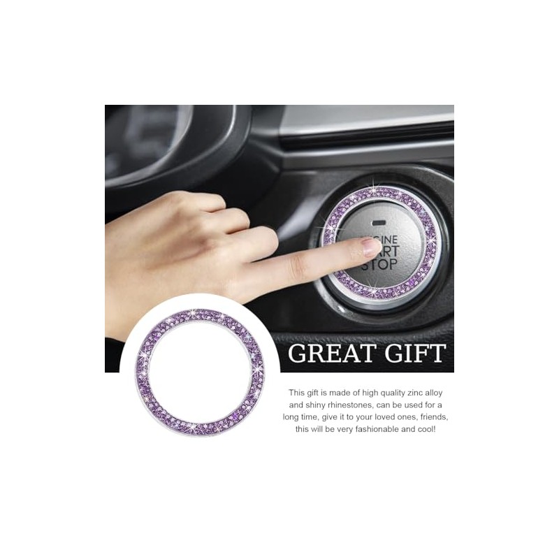 Gasedin Gasedin 2 PCS Car Engine Start Stop Decoration Ring, Sparkling Crystal Vehicle Push Button Start Sticker, Double Rhinestone Engine Ignition Button Decal, Universal Car Accessories (Purple)