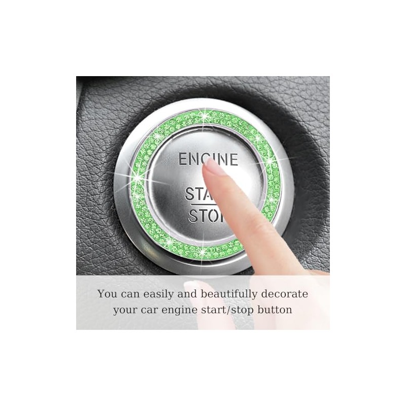 Gasedin Gasedin Car Engine Start Stop Decoration Ring, Sparkling Crystal Vehicle Push Button Start Sticker, Double Rhinestone Engine Ignition Button Decal, Universal Car Accessories (Light Green)