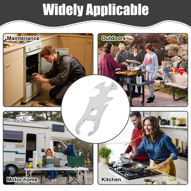 - 【Integrierter Flaschenöffner】: Neben seiner Hauptfunktion als Gasflaschenschlüssel verfügt dieses Tool über einen integrierten Flaschenöffner. Dies macht ihn zu einem unverzichtbaren Begleiter bei Outdoor-Aktivitäten wie Grillen, Bootfahren oder Camping.