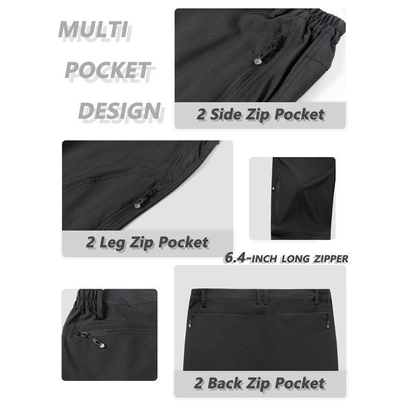 Gash Hao Men's Lightweight Hiking Pants Waterproof 6 Zipper Pockets Quick Dry Work Travel Fishing Outdoor Elastic Waist Athletic Pants(Black 34W*30L)