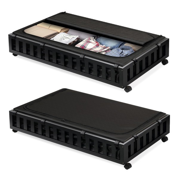 Gashell 2 Pack Bamboo Under Bed Storage with Wheels, 39”x20”x7.8” Lager Under Bed Storage Containers (Black)