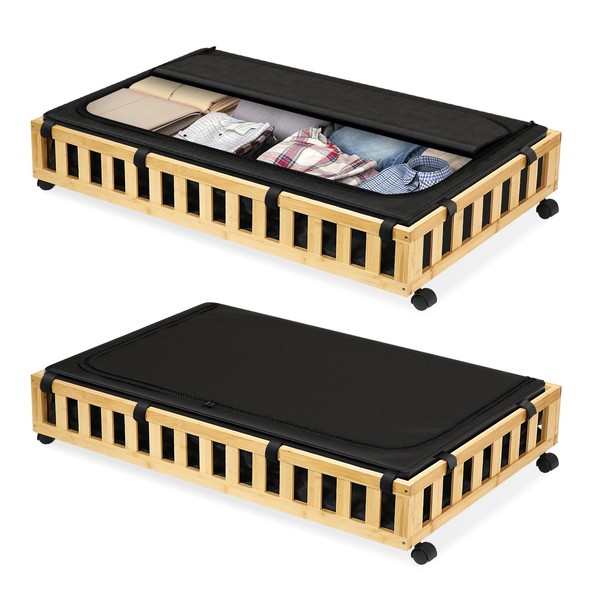- Sturdy & Durable Construction: Crafted from 100% high-quality bamboo, these under bed storage containers are built to last. With 4 smooth-rolling wheels and a weight capacity of 80 lbs, they securely hold seasonal clothes, bedding, and household items