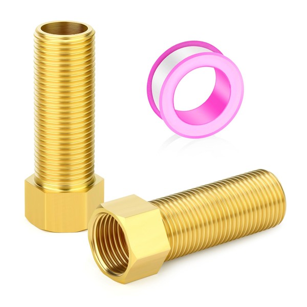 GASHER 2PCS 70mm Extension Brass Pipe Fitting, 1/2" Female to 1/2" Male Pipe Hex Bushing Adapter Converter Adapter