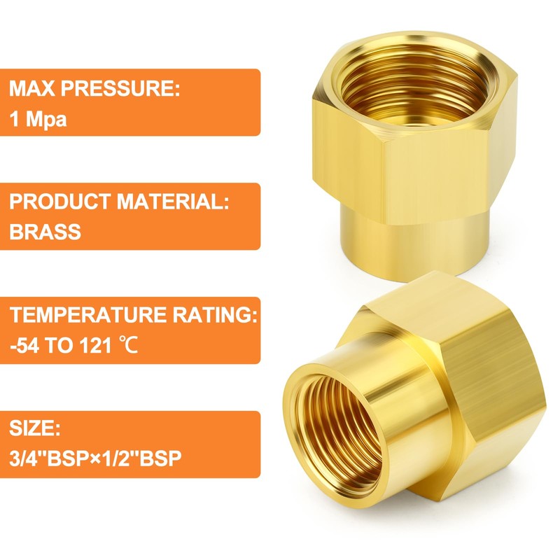 - Function: 3/4" x 1/2" BSP female thread hex coupling for connecting two pipes with external threads with different diameters. Or to extend the pipe length. Hard-connected, it does not need additional sealing for most situation, BSP thread size not actual diameter, it is only nominal pipe size.