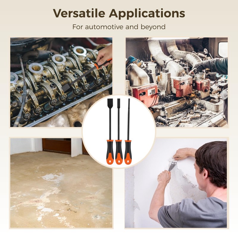 - 【Premium Craftsmanship with Chrome Vanadium Steel】Meticulously shaped and crafted, our scraper tool set is constructed with quality chrome vanadium steel and a durable plastic composite. This combination ensures longevity and resilience, making it the ideal choice for efficiently removing carbon deposits on old gaskets.