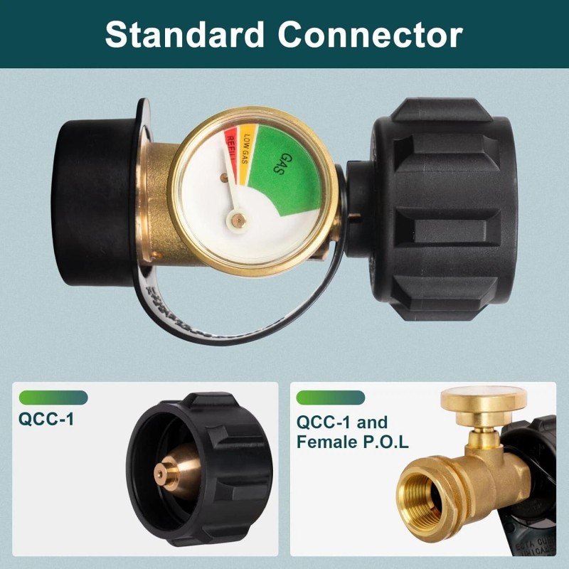 • Easy to Read : The gauges with color-coded dials indicate gas levels or time to refill. No need to lift and shake the propane tank