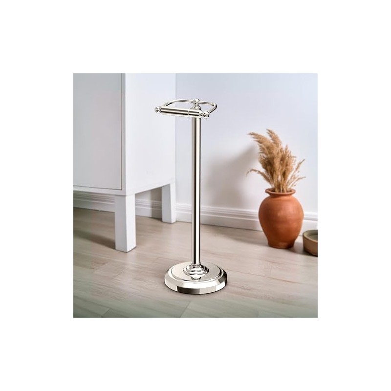Gatco 1436PN, Freestanding Toilet Paper Holder, 22” H, Polished Nickel/Floor Standing Weighted Base Toilet Paper Holder Stand