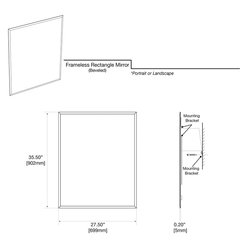 - An elegant approach to modern design, incorporating a smooth beveled edge and frameless construction.