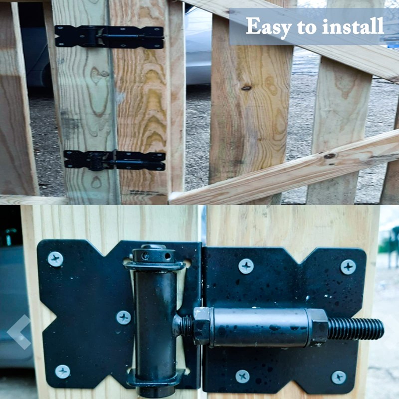 - 【Self Closing Gate Hinges】Vinyl gate hinges provide precise adjustment functions to ensure smooth operation of the door. You can easily fix door misalignment with the floor or door distortion problems by adjusting door hinges, making your door more beautiful and durable.Adjust the spring to a appropriate place,the spring tension is strong enough to achieve your desired smooth self-closing speed.Our self-locking gate hinges are suitable for almost all fence door sizes