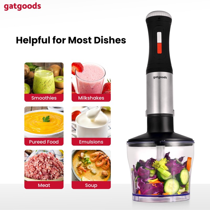 GATGOODS Immersion Blender Handheld, Peak 18000 RPM, Variable Speed with Turbo Mode, Whisk, Chopper, Frother for Smoothies, Milkshakes, Pureed Food and Emulsions, 28oz Mixing Bowl, 1000W Stick Blender