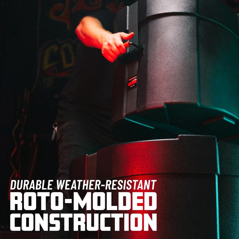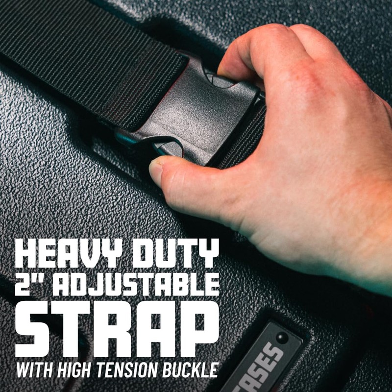 - Durable Weather-Resistant Roto-Molded Construction with Rugged Spring-Loaded 90 Degree Stop Handle and Heavy Duty 2” Adjustable Strap with High Tension Buckle