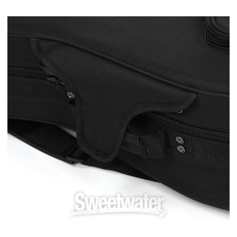 Gigging guitarists at Sweetwater know that the Gator GL-JUMBO lightweight jumbo acoustic guitar case is just the right blend of protection and convenience. From your car's back seat to your spot on stage, protecting your guitar is always the priority. The GL-JUMBO's semi-rigid frame is covered with a 600-Denier nylon outer shell that resists moisture and tearing, keeping your guitar clean and safe. Convenient exterior pockets are ready for your gig essentials and the plush interior lining leaves your guitar's finish scratch-free - you'll always be ready to play with Gator's GL-JUMBO lightweight jumbo acoustic guitar case. Gator GL-JUMBO Lightweight Jumbo Acoustic Guitar Case at a Glance: