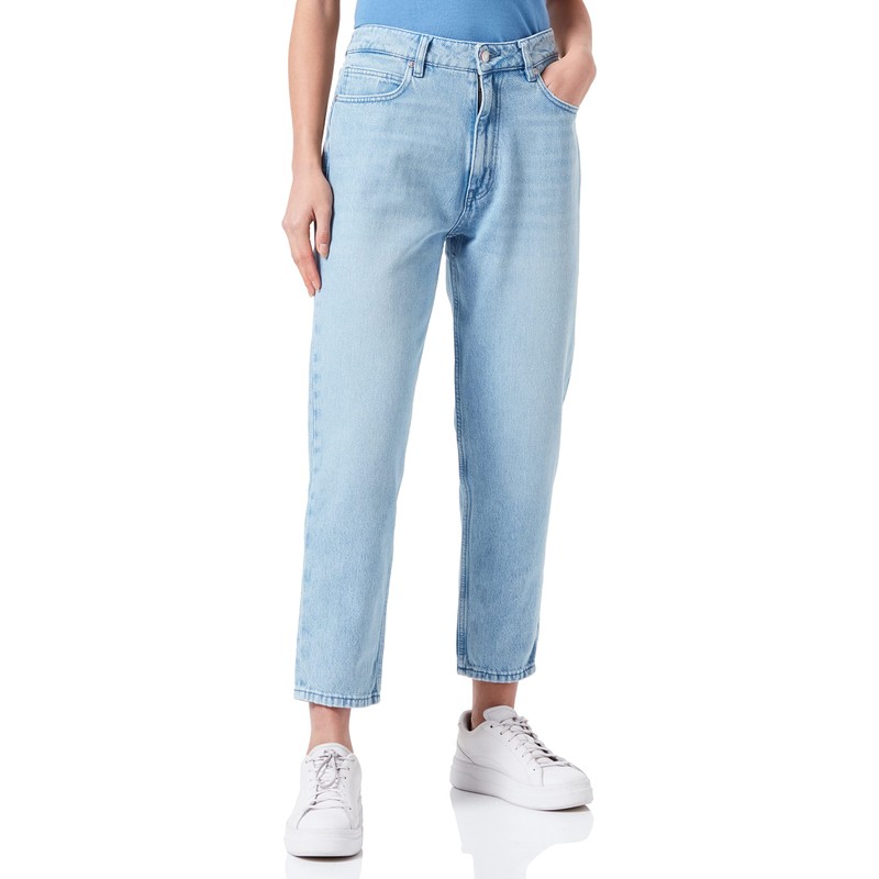 - Has a loose fit, high waistband and tapered leg