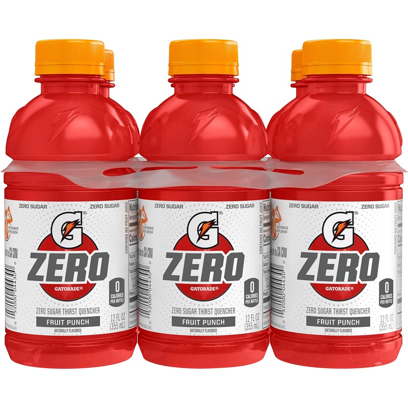 Gatorade G Zero Thirst Quencher, Fruit Punch, 12oz Bottles (6 Pack)