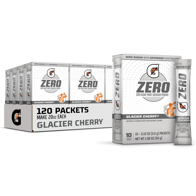 - Includes 12-10 packs of Gatorade G Zero Powder Packets, Glacier Cherry Flavor