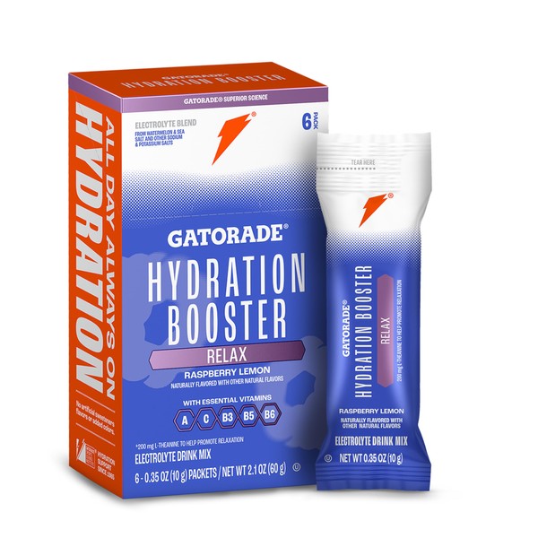 Gatorade Hydration Booster Electrolyte Drink Mix Powder Packets, Relax and Unwind, Raspberry Lemon, Makes 20 Fl Oz (6 Pack)