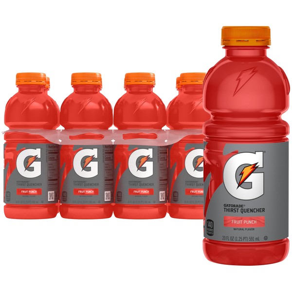 Gatorade Thirst Quencher Sports Drink, Fruit Punch, 20oz Bottle, 8 Pack, Electrolytes for Rehydration