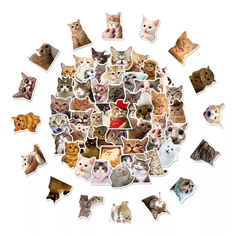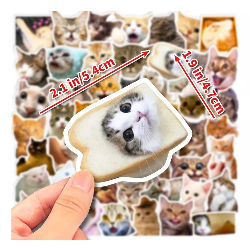 Gatos Divertidos Memes-B 50 Calcomanías Stickers Pvc Vs Agua Stickers Variados Sin Repetir Impermeables Removible Diseños Únicos Para Electrónicos, Laptops, Termos, Celulares
