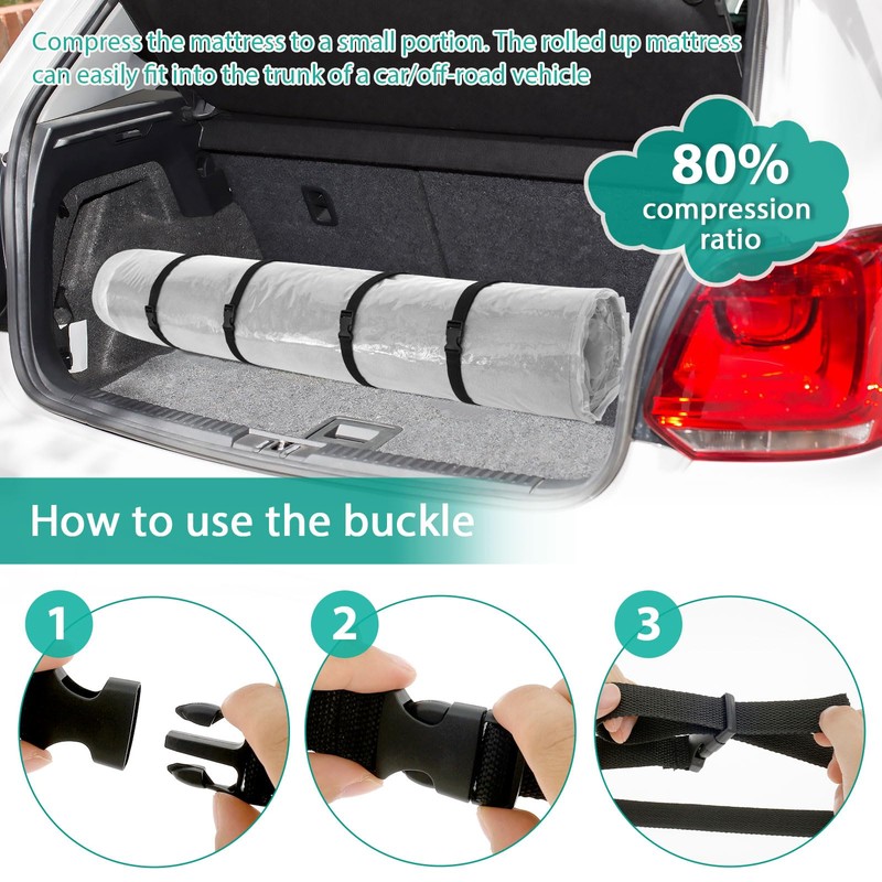 Efficient Compression: This mattress compression vacuum bag can compress the mattress to a fraction of its size and easily fit into the backseat or box of your car or SUV.