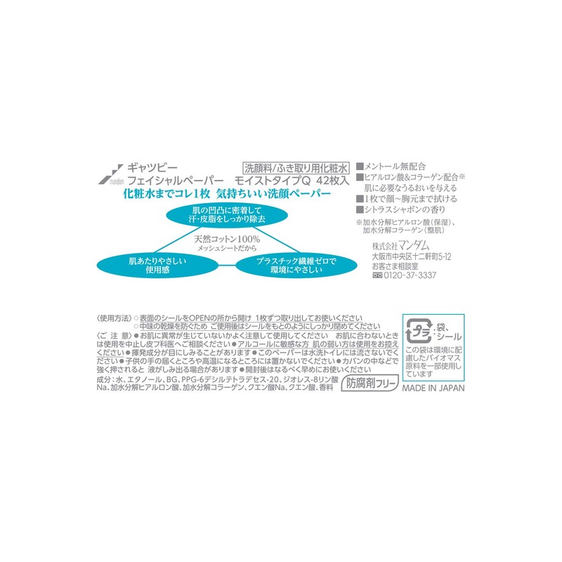 GATSBY Facial Paper, Moist Type, Men's, Facial Cleansing Sheet, Citrus Soap Scent, Set of 42 Sheets (x3)