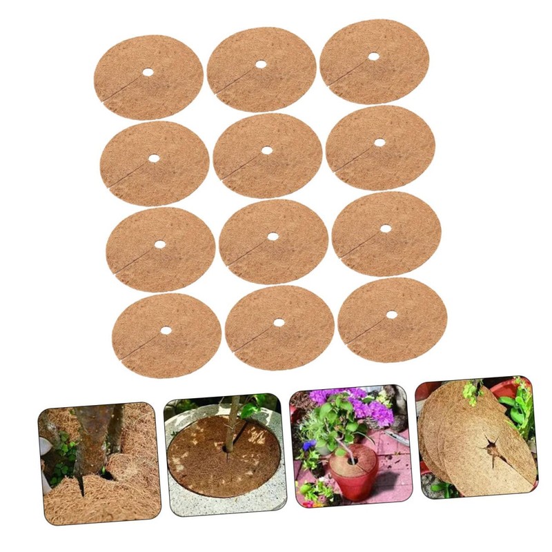 Gatuida 12Pcs Natural Coconut Fiber Mulch Rings Tree Protection Mats for Moisture Retention Animal Barriers and Grass Prevention for Gardens Balconies and Flower Beds