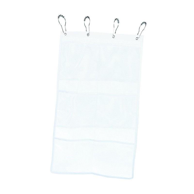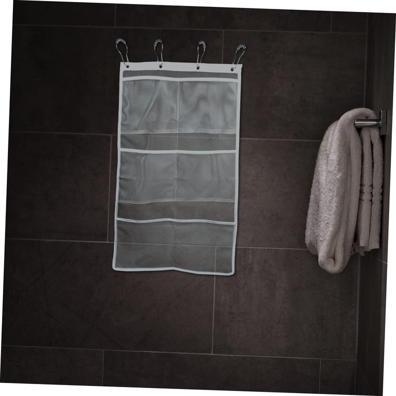 mesh hanging organizer Very space saving, can be hung on shower curtain rod, closet rod or shower door; easy to fold when not in use.hanging mesh pockets This is a hanging mesh bag for bathroom, which is made of mesh and stainless steel materials, for use.hanging mesh storage pocket The carry all is perfect for the gym, school, dorm, college, travel, camping and more!