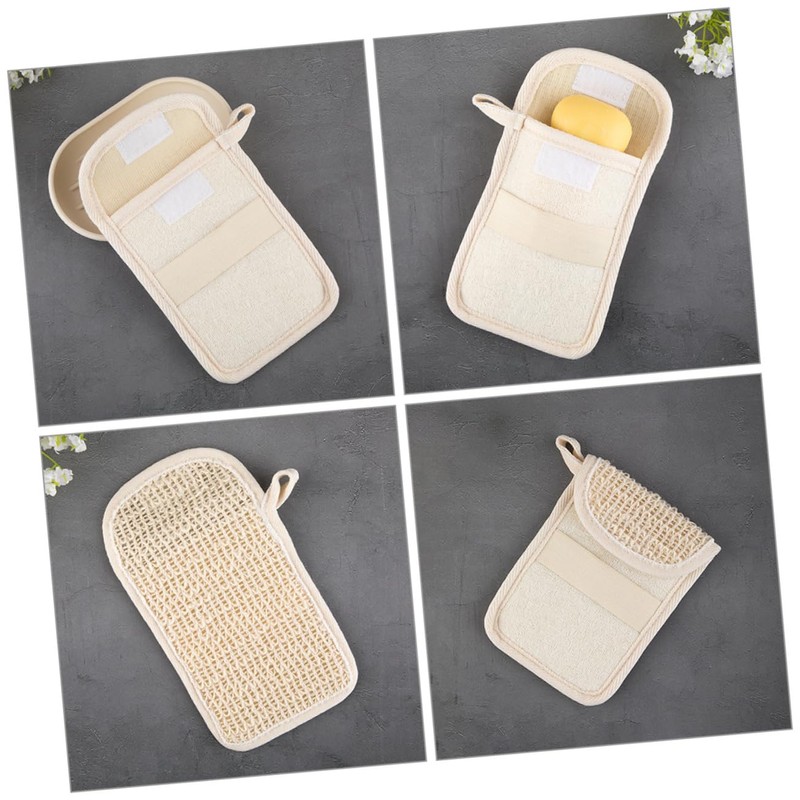 -Material:Cotton and linen bar soap loofah pouch