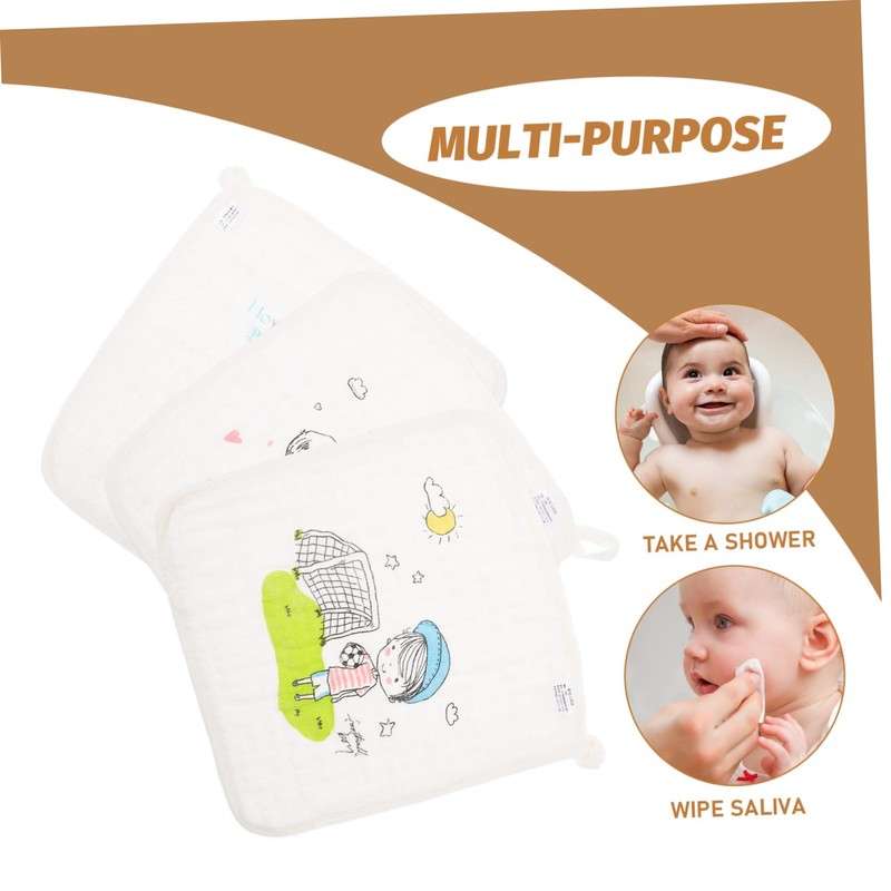 - Soft washcloths--this square towel is made from supple cotton material and can be safely used as burp cloth, hand drying cloth, drool towel