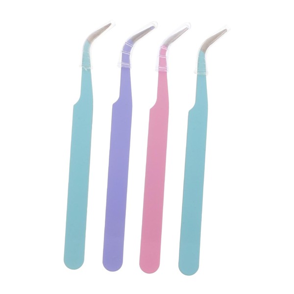 Gatuida 4Pcs Curved Tweezers Stainless Tools for Nail Art Scrapbooking Crafting and Eyelash Extensions for Rhinestone Application and Sticker Placement