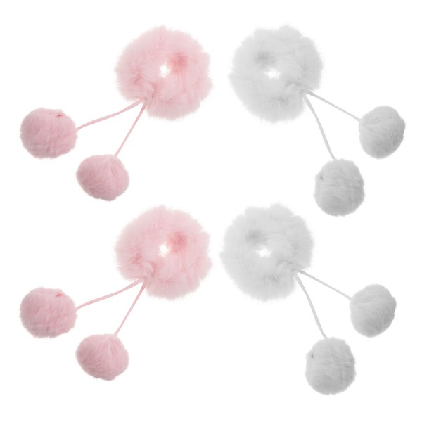 Gatuida 4pcs Hair Ties With Balls: Soft Plush Hair Ties For Women - Furry Elastic Scrunchies With Fluffy Pompom - For Casual School And Autumn Looks