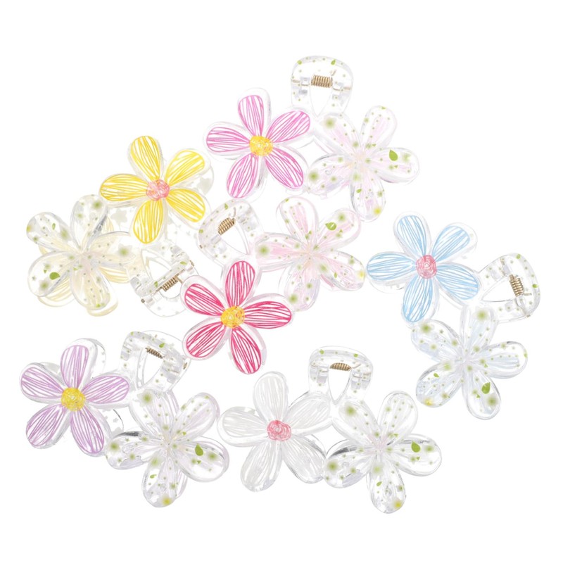 claw clips Elevate your hairstyle with these charming floral claw clip, designed to bring a touch of elegance and creativity to your look.spring hair clips Featuring a delicate five-petal flower design with vibrant prints, these clips combine functionality and style, making them for casual outings, parties, or daily wear
