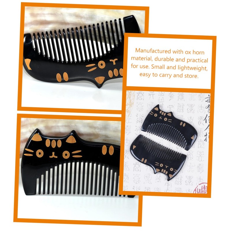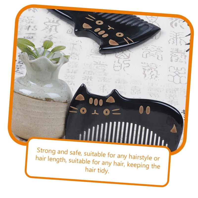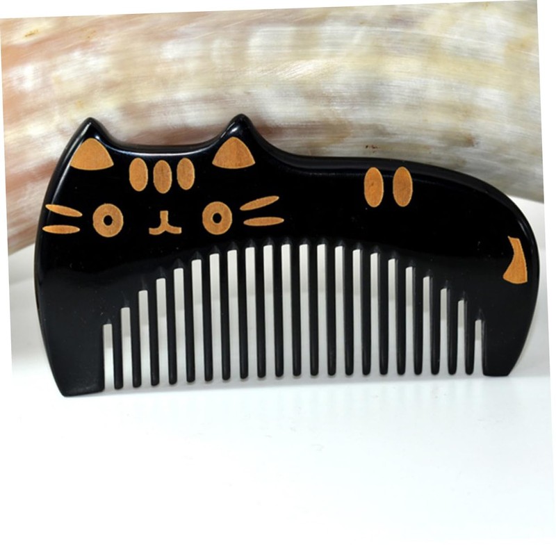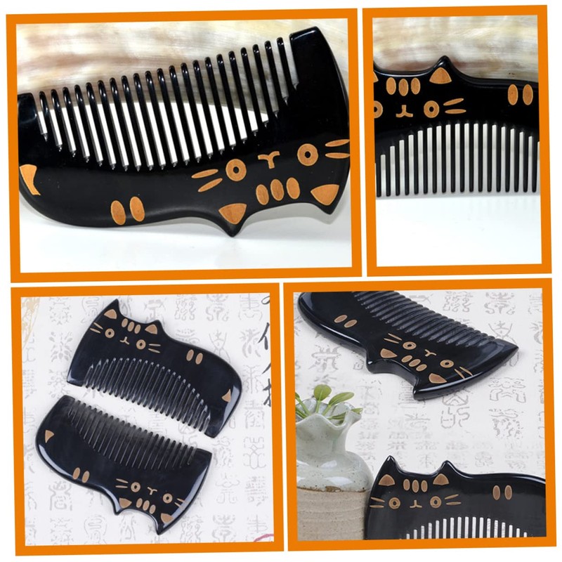 Gatuida Cat Shaped Horn Detangling Comb Wide Teeth Reusable Styling Brush for Lightweight Portable Prevents Tangles Split Ends Natural Ox Horn Material