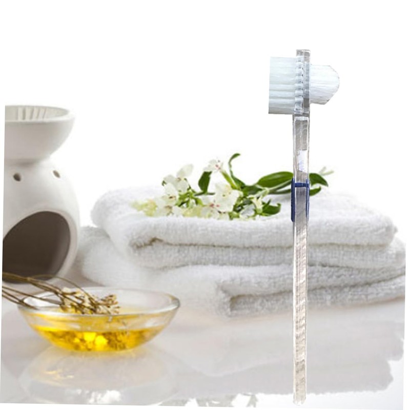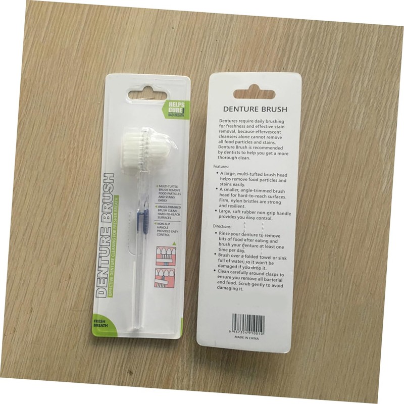 brush It may take you more time to clean False than normal teeth because dentures require daily brushing for freshness and stain removal, and effervescent cleansers alone cannot remove all food particles and stains.hard tooth brush This kind of double-sided brush with different shapes of bristles will be the choice for you.cleaning toothbrush So brush is recommended to help you get thorough clean