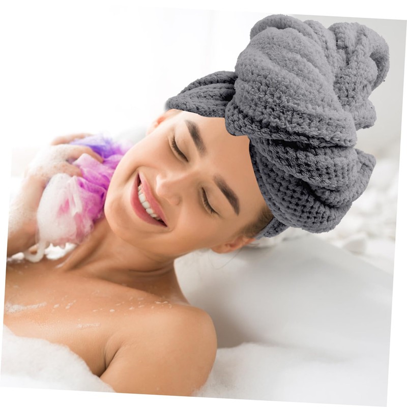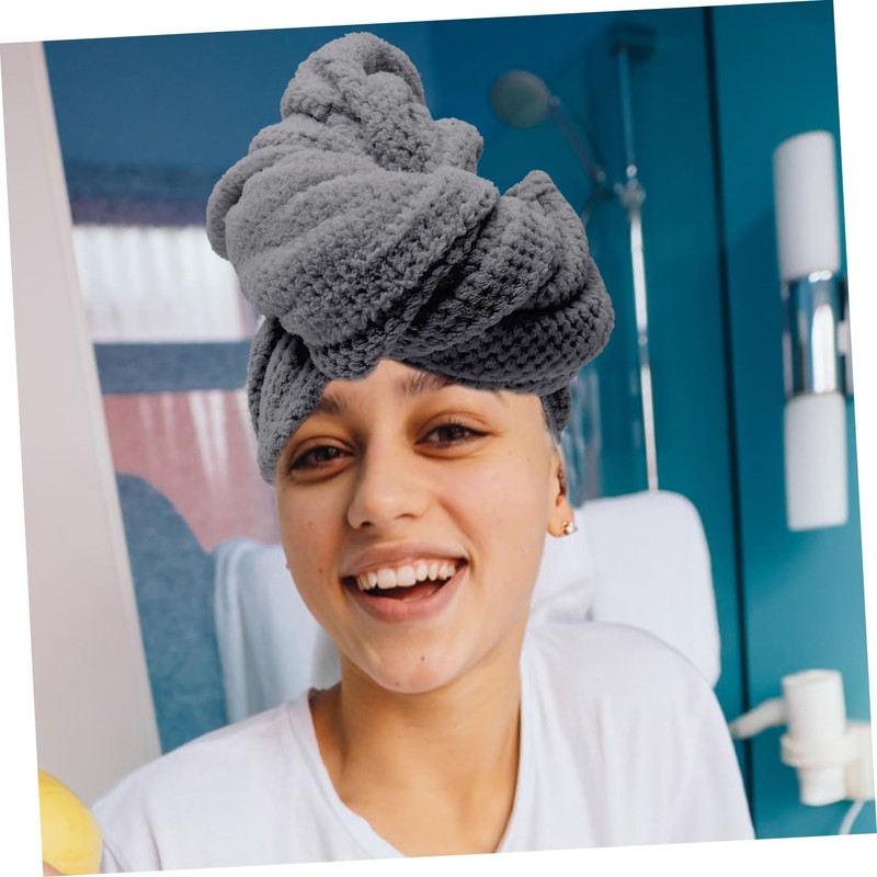 - Color: Grey towel cap for wet hair