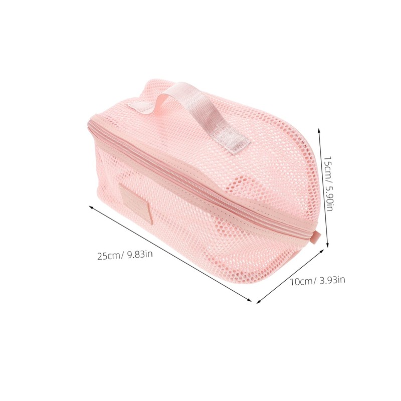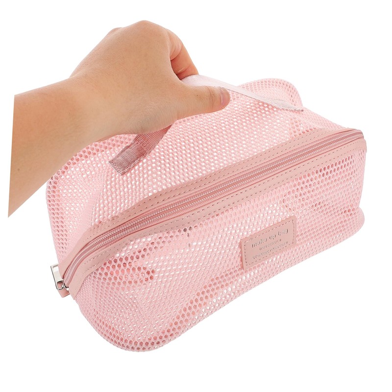 -Ergonomic carrying handle: designed for comfort and convenience, the handle makes transportation effortless and stylish mesh makeup storage bag