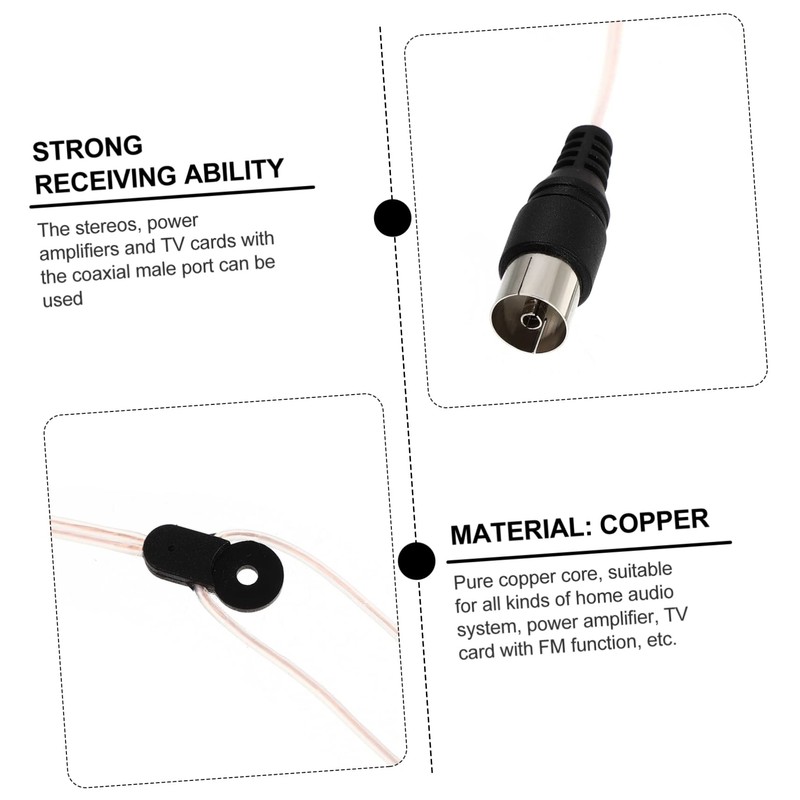 - Pure copper core, suitable for all kinds of home audio system, power amplifier, TV card with FM function, etc FM Antenna.