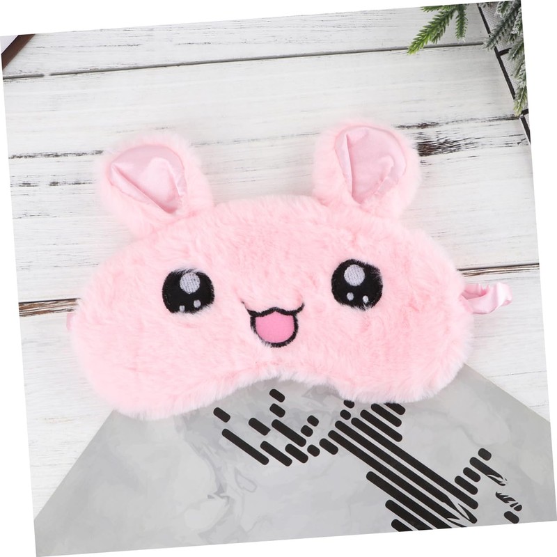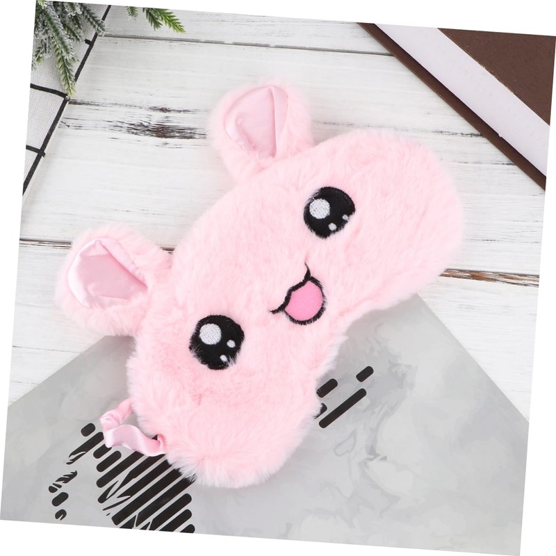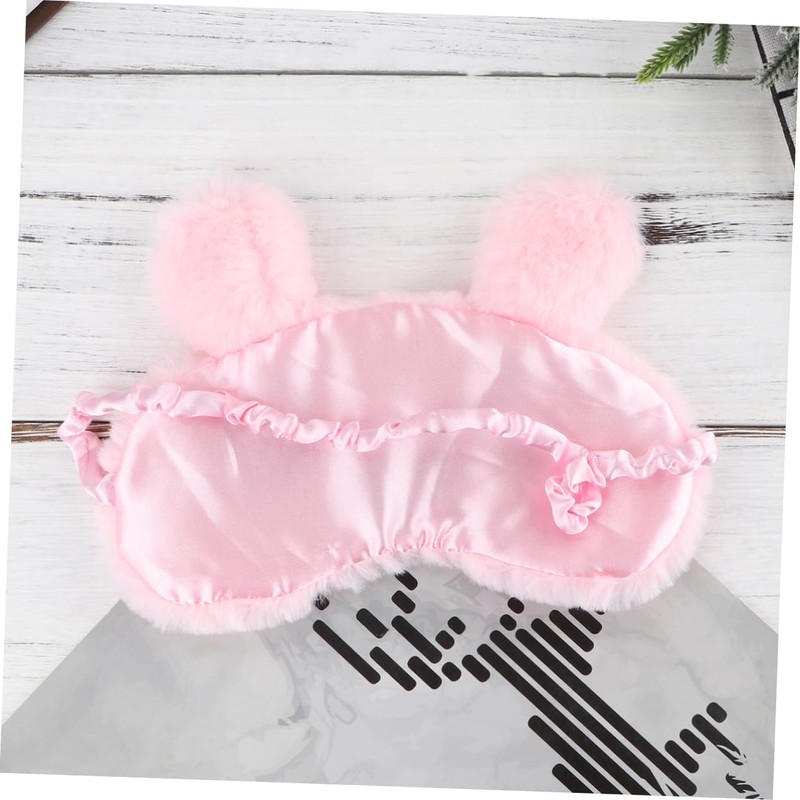 Gatuida Sleep Eyeshade Rabbit Pattern Plush Comfortable No Pressure Night Blindfold for Sleep Travel Nap Pink
