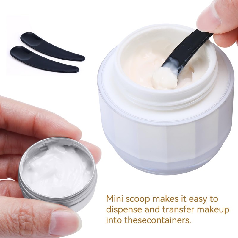 - Package: It contains 12 x 10 ml empty jars and 2 mini spatulas. It is small and easy to carry, ideal for when you travel or go out.