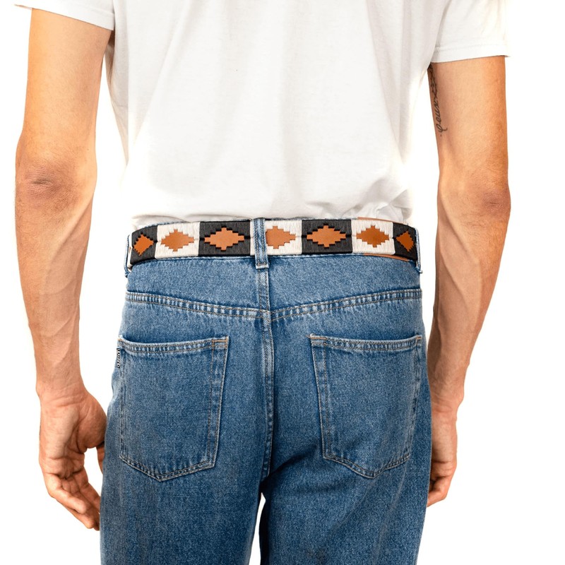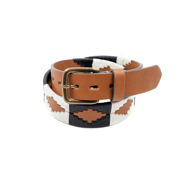 GauchoLife Polo Belt Hand-Stitched leather belt (Black White Tan, 44)
