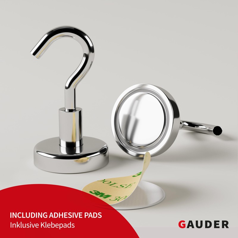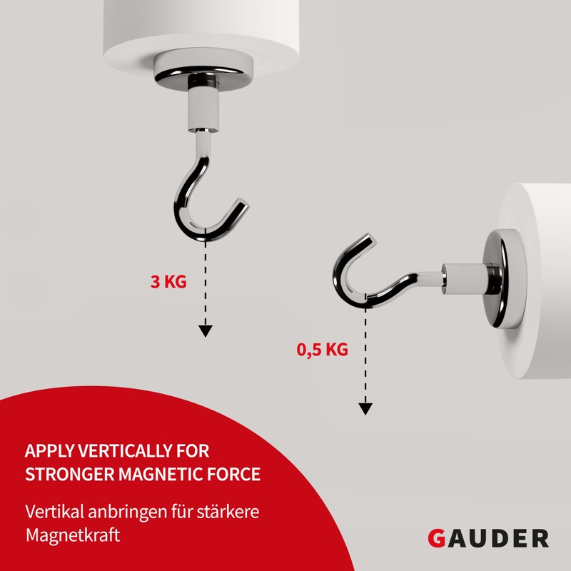 - GAUDER PREMIUM QUALITY – The GAUDER Neodymium Hooks (34 mm long x 20 mm wide) are very robust in terms of shape and size. All GAUDER magnets are manufactured using the elaborate anisotropic process.