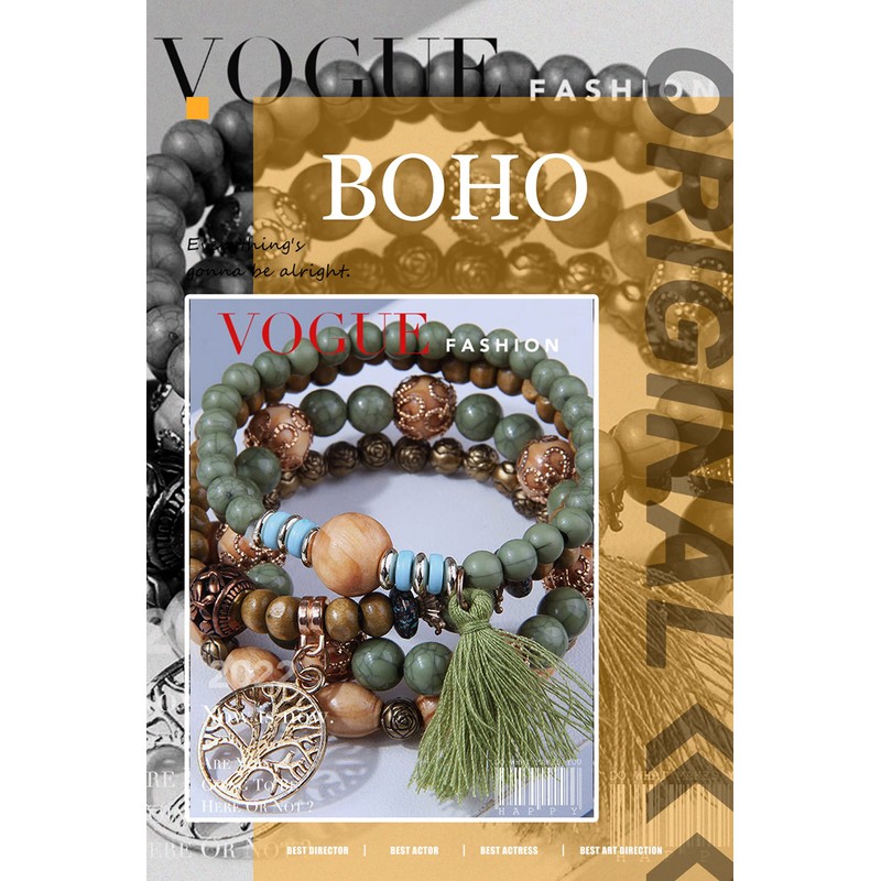 - 📿📿【Beautifully Designed】The Bohemian bracelet is made of high-quality wood beads, alloy, and elastic rope, which is not easy to fade or break. Bungee ropes are very elastic, you don't have to worry about size. The unique military green tassel decoration brings a symbol of freedom and romance, making it easy to wear and comfortable to wear. The multi-layer bracelet comes in multiple colors and comes with a life tree pendant, making it cute and stylish. Add color to your daily wear.