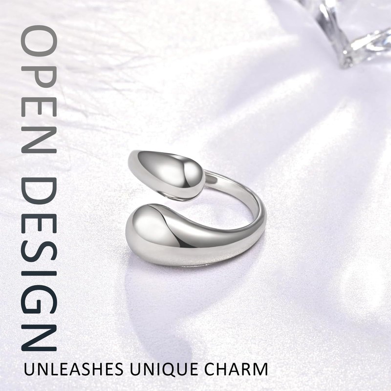 - 【Design Style】Water droplets, as a common form in nature, represent purity, clarity, and vitality, and are a symbol of vitality. This ring is inspired by water droplets and cleverly captures the agility and softness of water droplets through its smooth irregular curve design. The opening design of the ring reminds people of the continuity of water flow, as if water droplets are flowing at fingertips, reflecting the designer's love and longing for nature.
