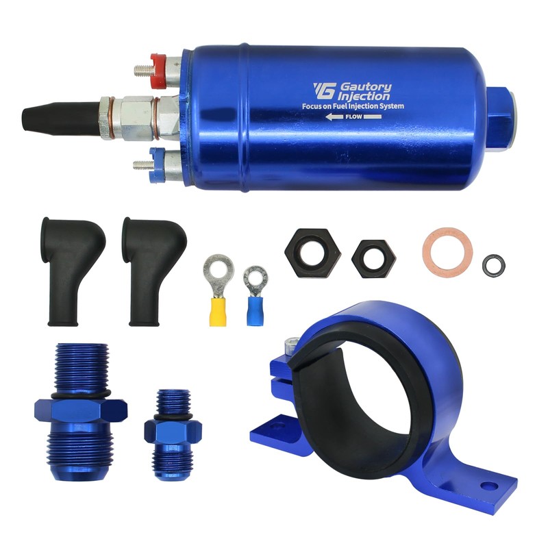 Gautory Universal External Inline Electric Fuel Pump High Flow 300LPH 12V with Mounting Bracket Clamp Blue